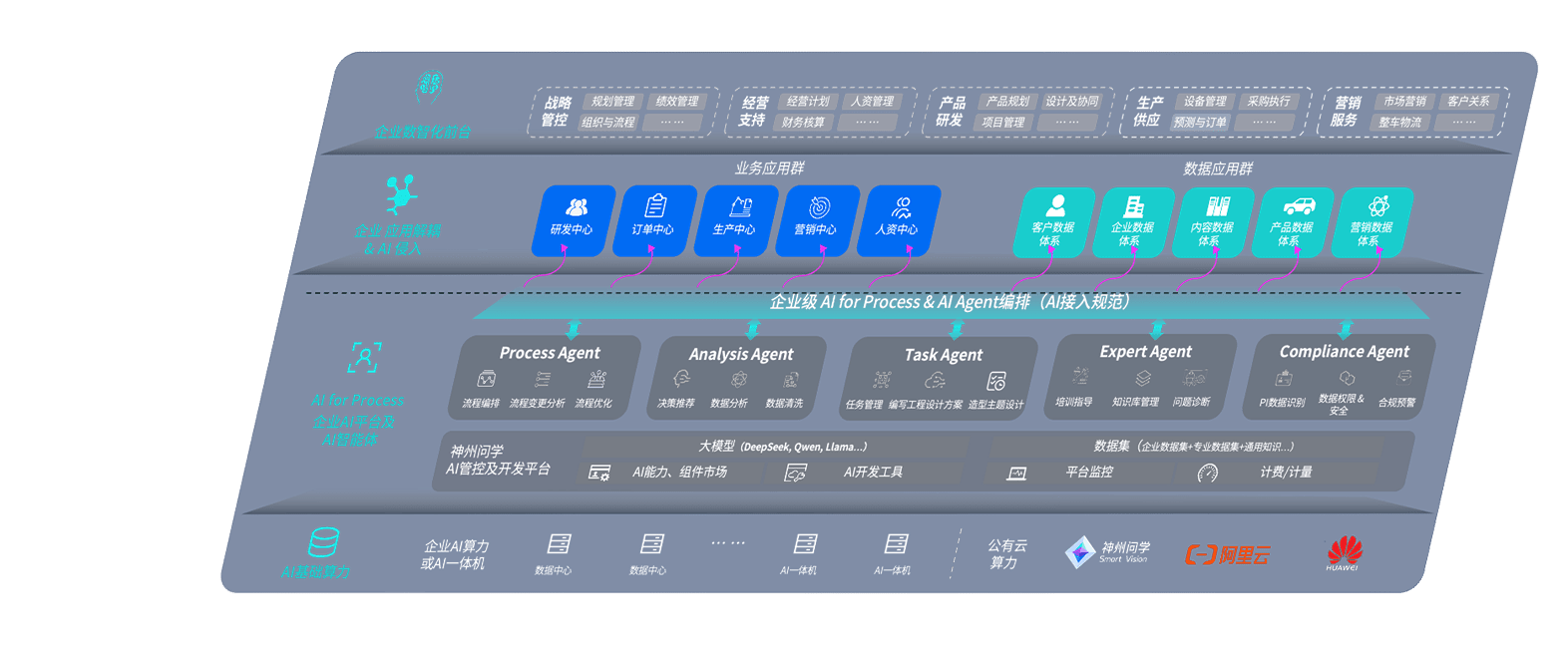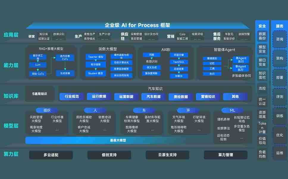 端到端的一站式AI工作空间深度融合了从企业战略规划到日常经营的全流程业务板块,,,,定向解决车企内部领域多、、部门多、、链条长、、、场景碎片化等难题,,,,支持车企快速构建以AI为核心的生产力写作体系,,,实现任务执行与AI能力的无缝集成与交互