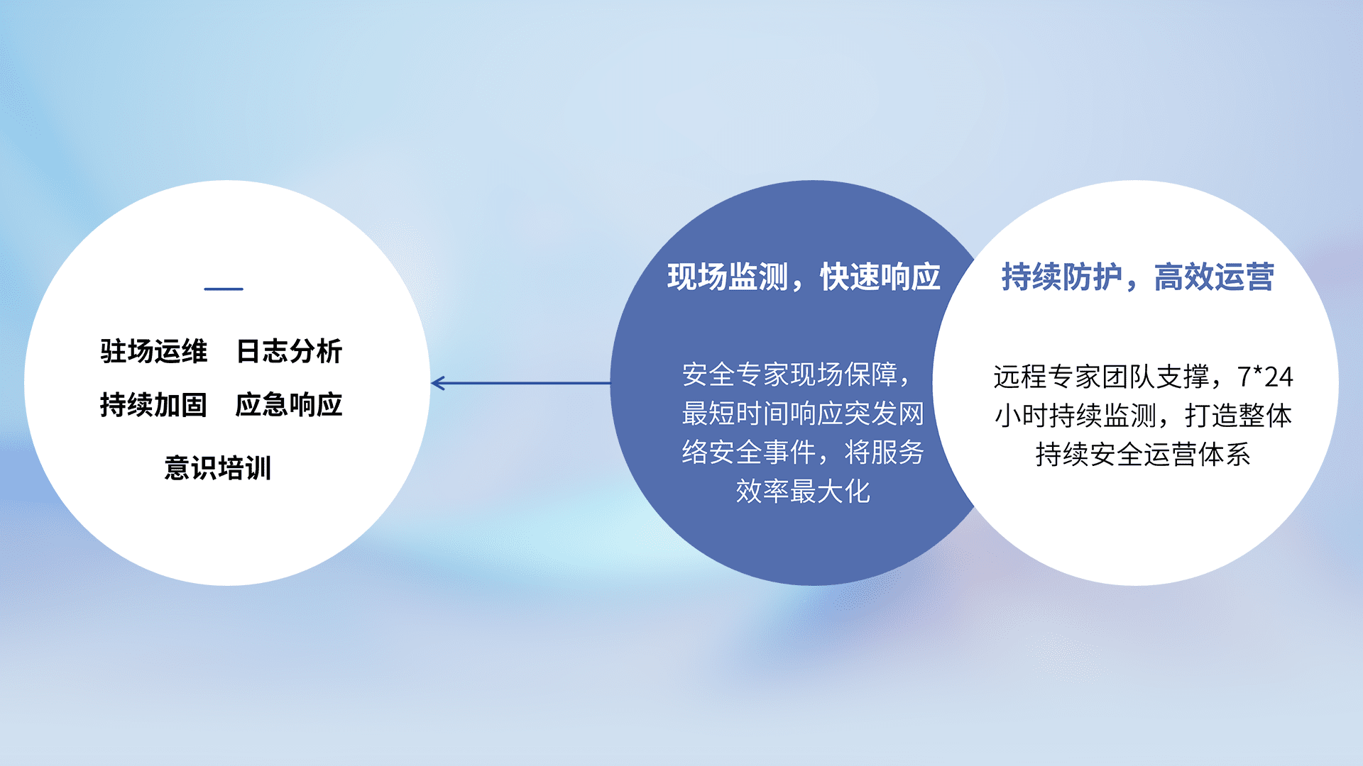 7X24小时持续监测安全事件,保持安全策略有效性,降低资产脆弱性风险,,,精准拦截黑客攻击,,,减少被黑客利用的机会,,第一时间遏制,,,降低损失。。。